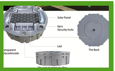 Markerele solare pentru drumuri sunt dispozitive de iluminare LED alimentate cu celule solare care necesita intretinere redusa, delimiteaza marginile si liniile centrale ale drumului si ajuta la semnalizarea trecerilor pentru pietoni. Incorporate in suprafata drumului la nivelul acestuia.